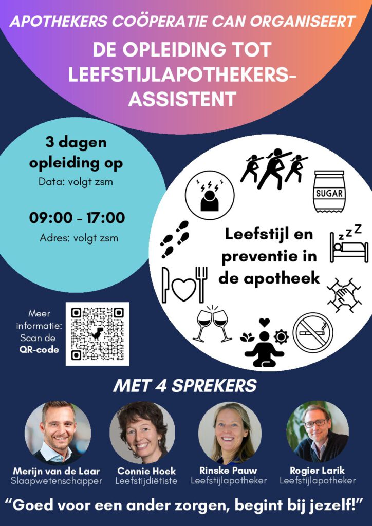 In het werkgebied van de Coöperatieve Apotheken Noordwest-Veluwe willen de apothekersassistenten het verschil maken in de regio. Deze 3-daagse opleiding geeft je de kennis om als apothekersassistent(e) of farmaceutisch consulent je werk te verbreden door ook gezondheidsadvies te gaan geven naast advies over medicatie.