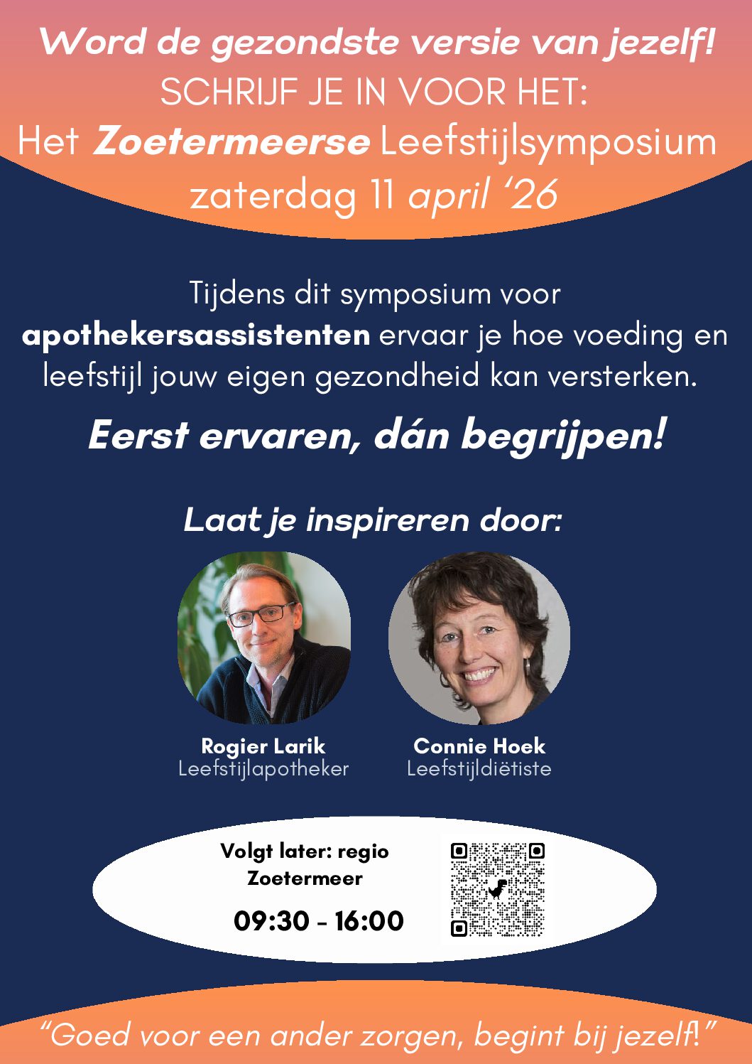 Ontdek hoe jouw eigen leefstijl de basis vormt voor echte zorg. Tijdens dit unieke congres voor apothekersassistenten duik je zelf in de wereld van voeding, vitaliteit en gezondheid – zodat jij van binnenuit ervaart wat leefstijl voor je lichaam doet.